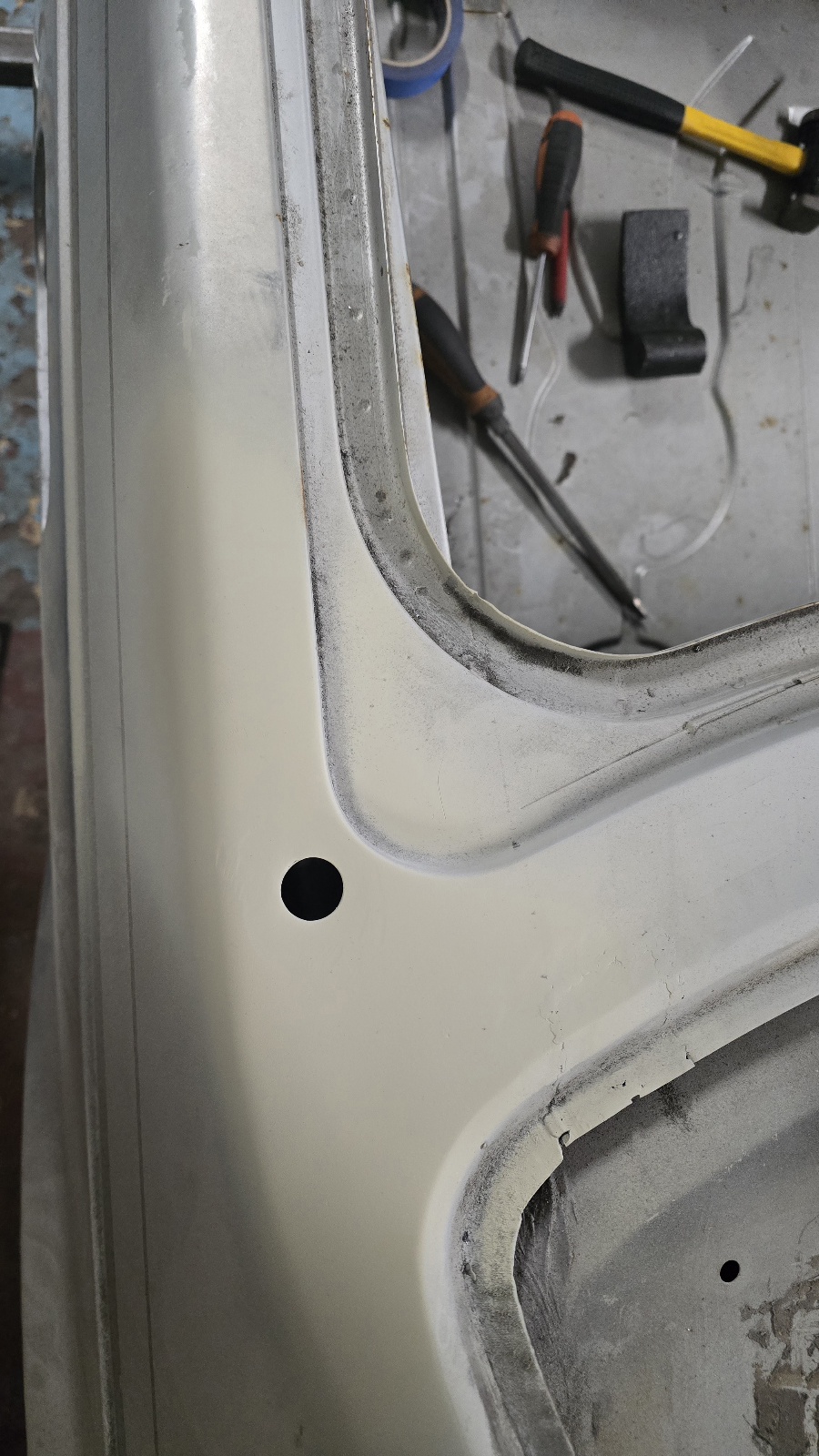 Pour aller avec tout ca , il me manquait un peu d'outillage à mains , je me suis donc commandé des burins plat orienté carrosserie , et un pointeau automatique car le méthode classique marteau / pointeau déformé la tôle .
