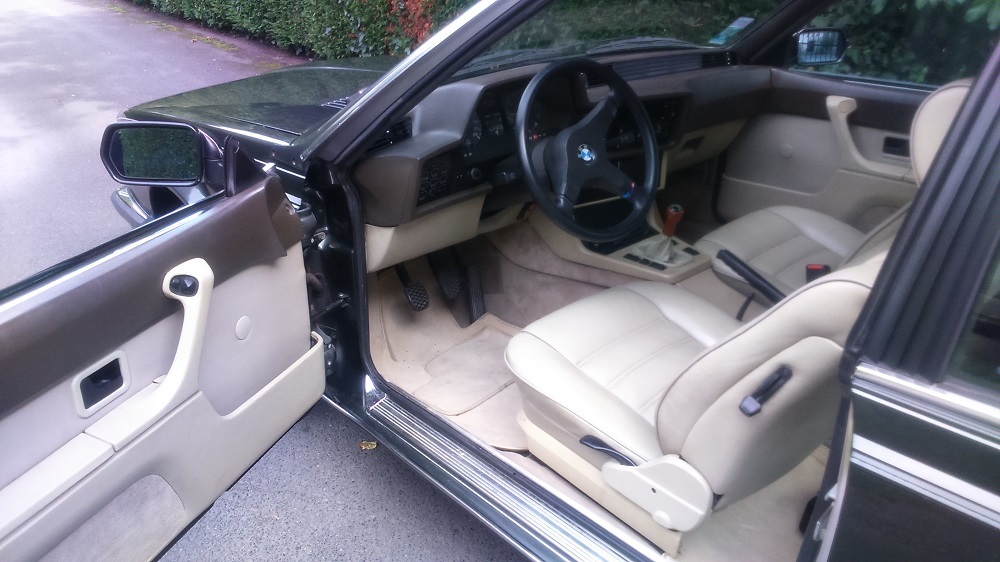 Bref décidé à vendre ma 118i (très sympa certes mais trop d'électronique, bloc turbo et non atmo, sans compter la direction pas hydraulique ...), je me dis qu'utiliser le budget pour en reprendre deux à la place serait pas mal... Mme a capitulé depuis un moment ! Donc vente de la 1 et achat d'un coupé 320ci e46 en daily, histoire de rouler en L6 au quotidien. Mais que prendre en plus ? Après avoir raté la sublime 528i e12 couleur Brazil tout refaite d'un copain du club Horizon (j'en pleure encore !), je traîne désespérément mardi sur un site de vente bien connu (et dangereux dirait ma femme !) lors de ma pose midi au boulot quand je tombe sur l'annonce d'une 628 csi : ah cool, le requin de chez BM ! Elle a l'air propre, modèle 85 donc une phase 2, combo originale cuir beige/tableau de bord marron et beige... J'appelle le soir même, très bon contact et en plus la voiture est vert foncé et non noire comme j'avais cru sur les photos. Après gros échange au tél et pas mal de photos transmises, on s'entend sur le prix et on se met d'accord pour que je vienne dès le samedi matin. Je prépare donc l'administratif et le voyage depuis Lille... Jusque Chambéry !