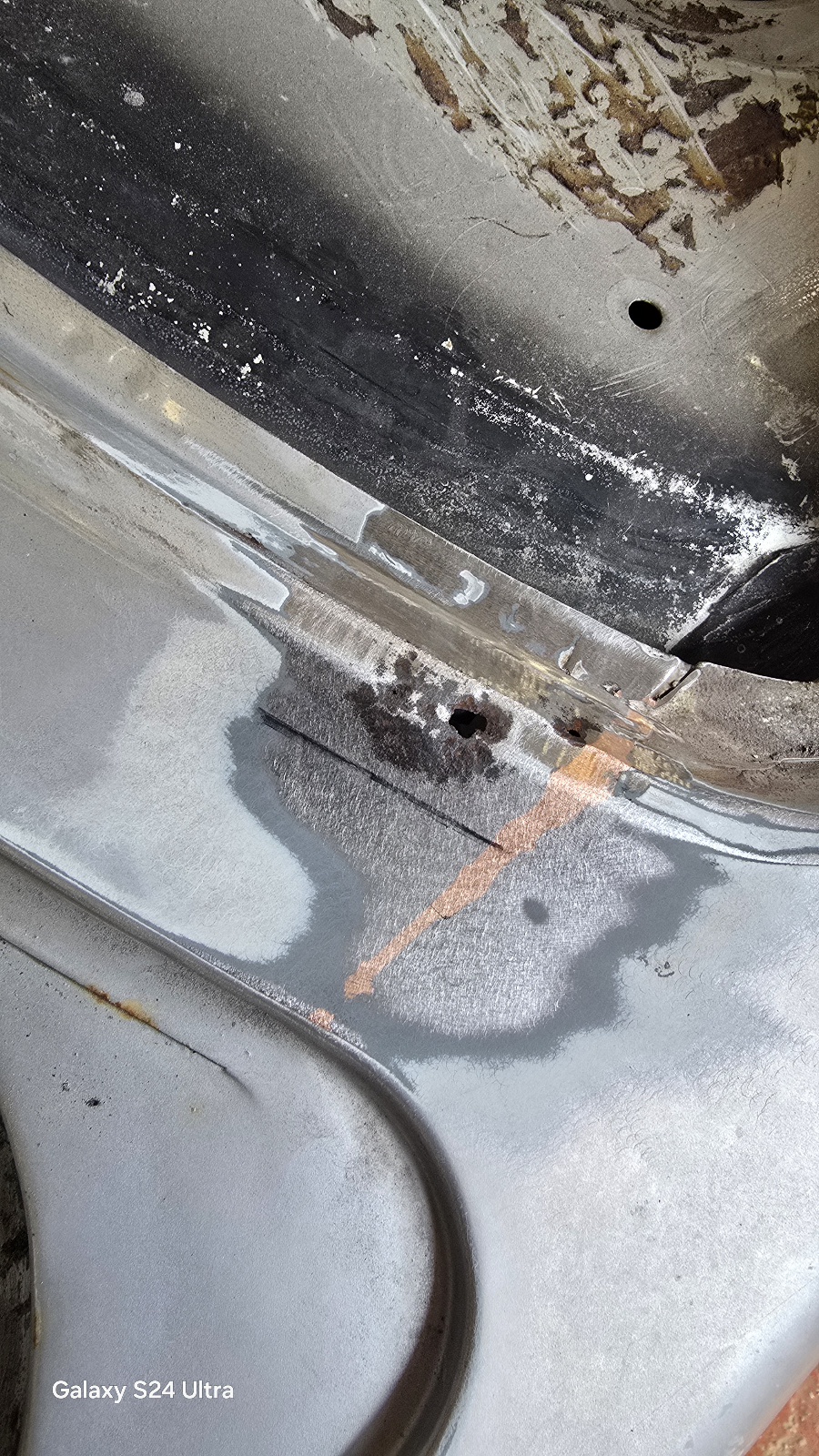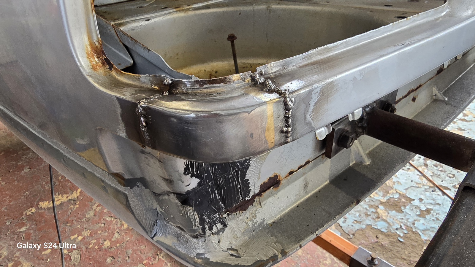 Après décapage , la rouille avait commencé à faire son œuvre.