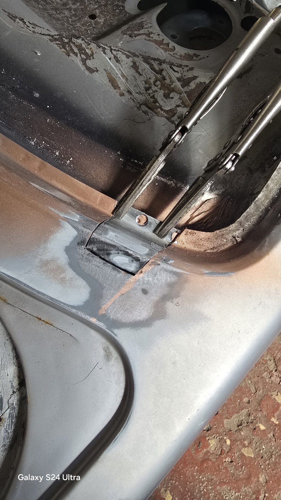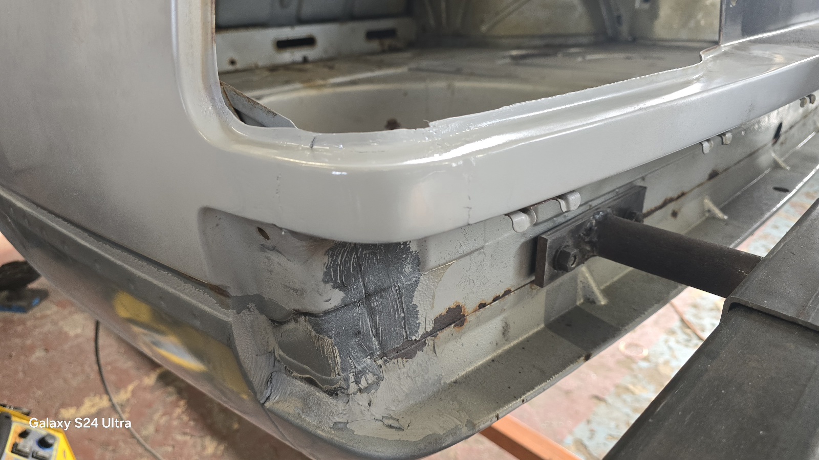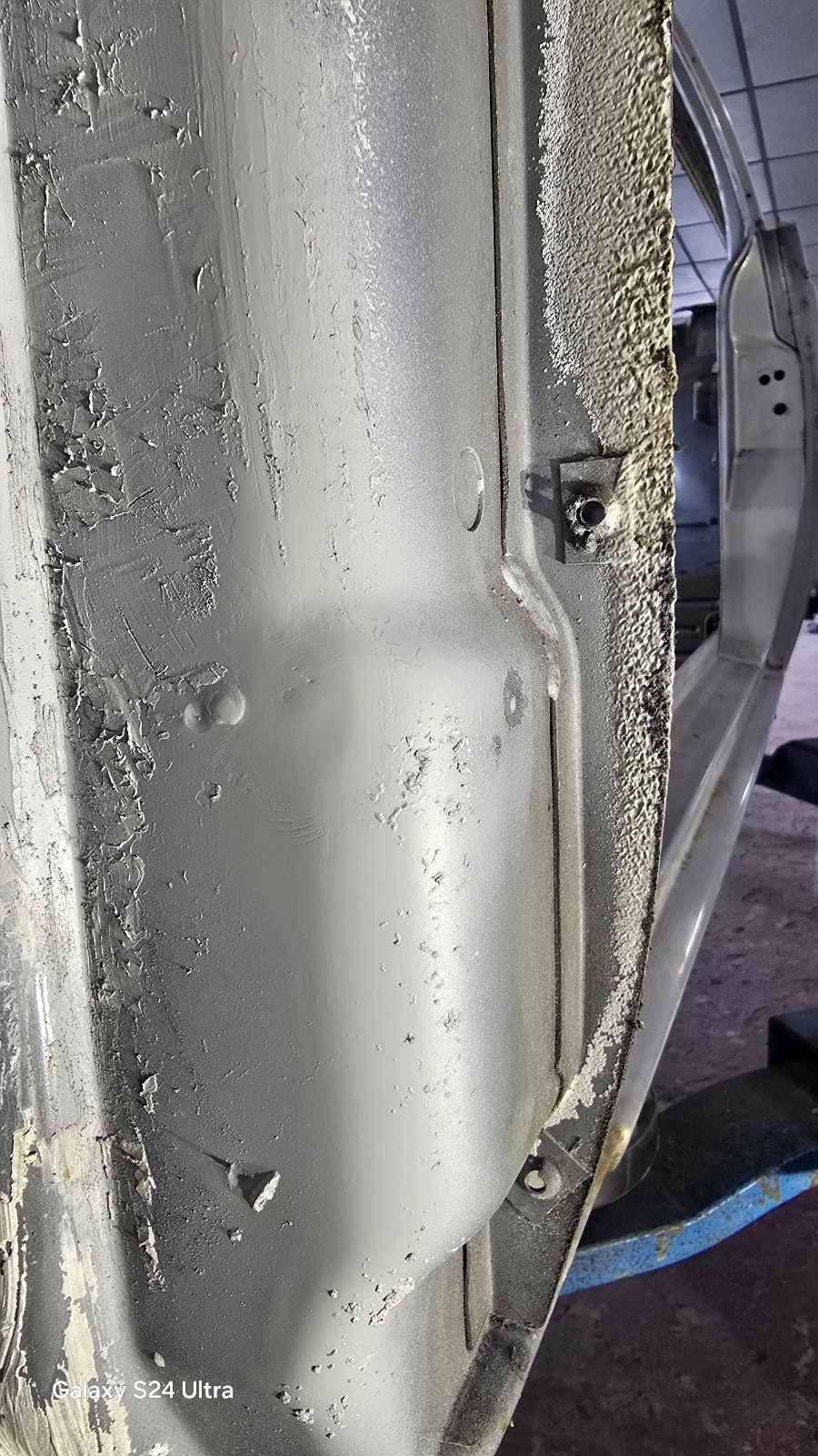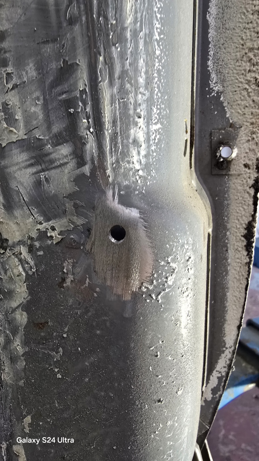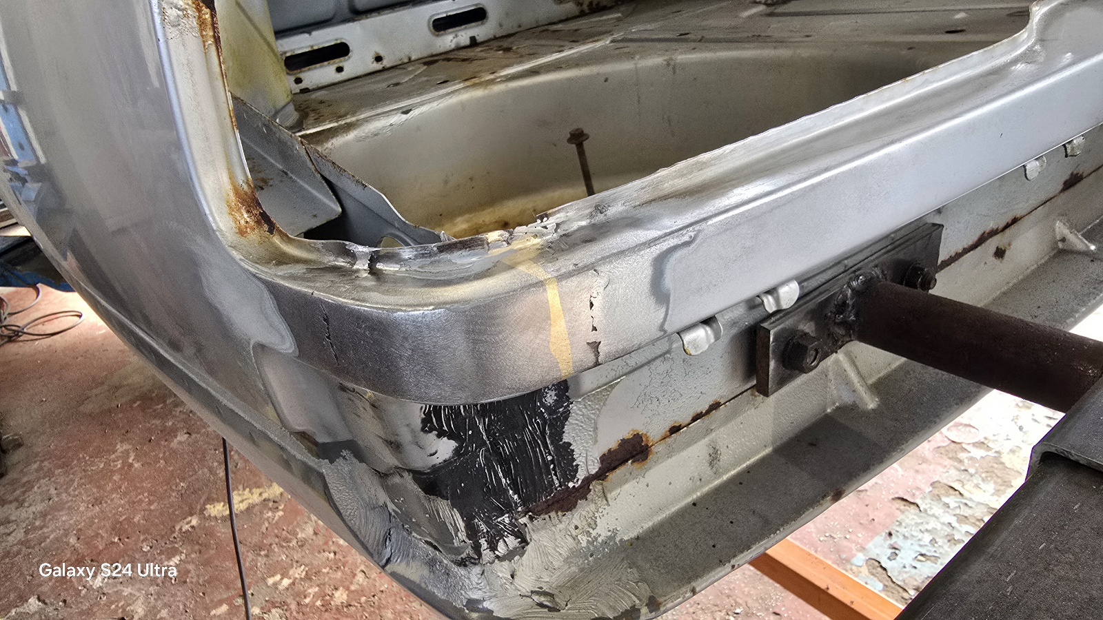 L'étape d'après est un peu plus costaud , j'ai attaqué la corrosion sur le bas du montant A coté passager .
