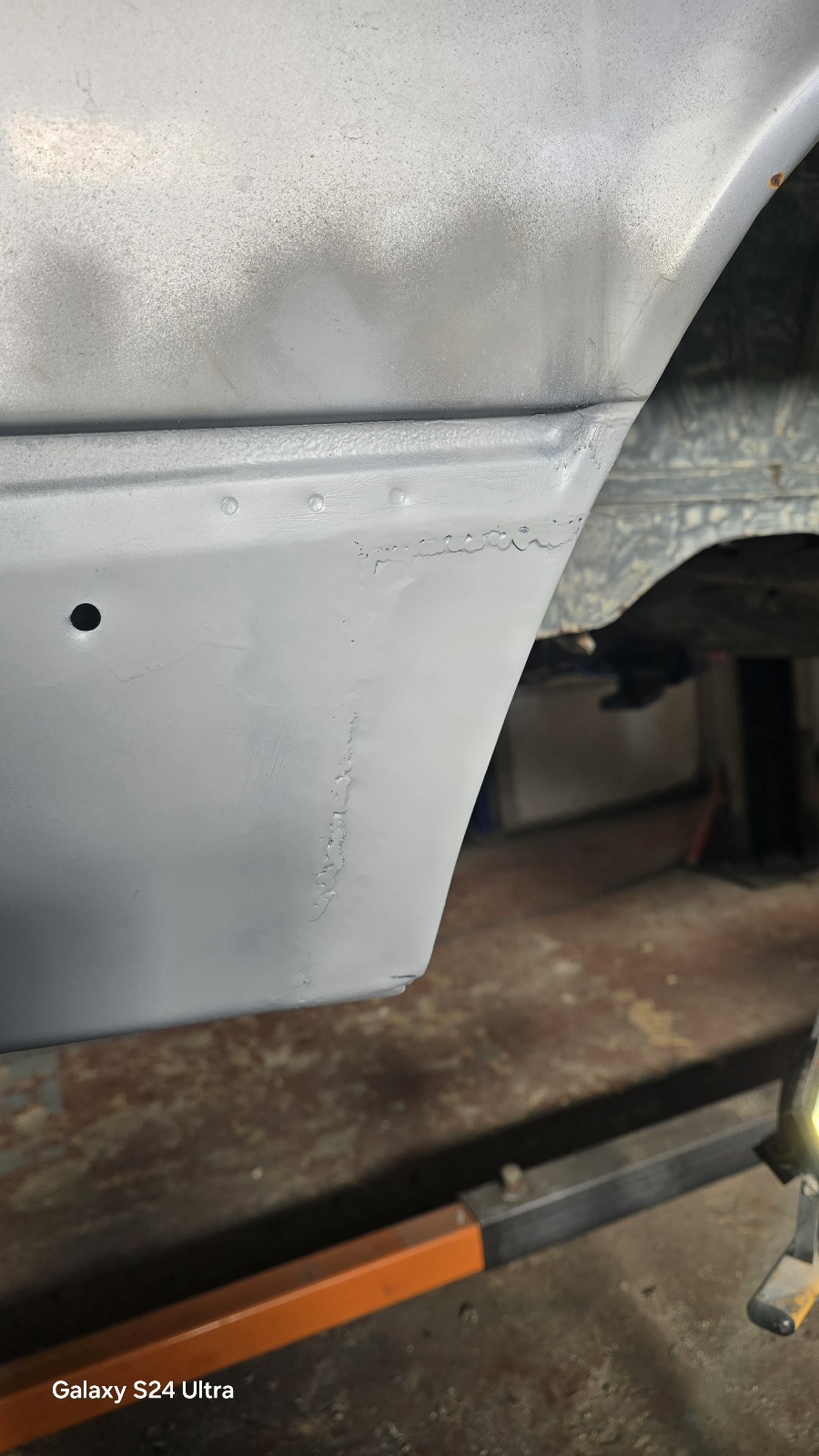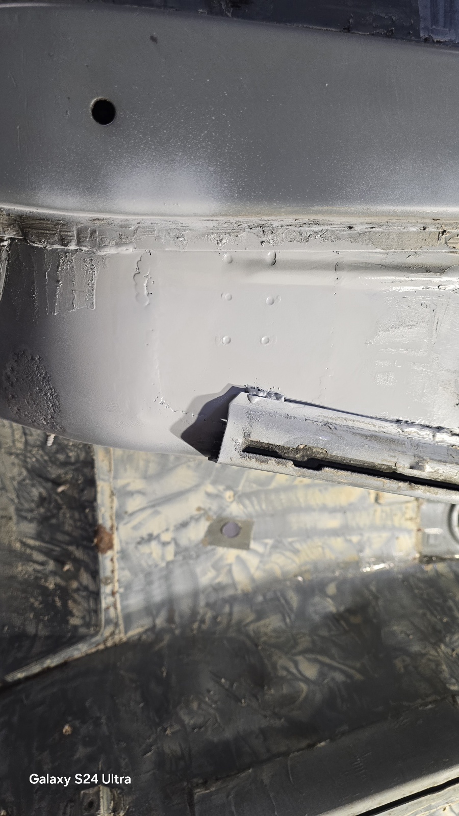 La peau extérieure du bas de caisse est propre , mise à part un petit trou au niveau du support de cric .