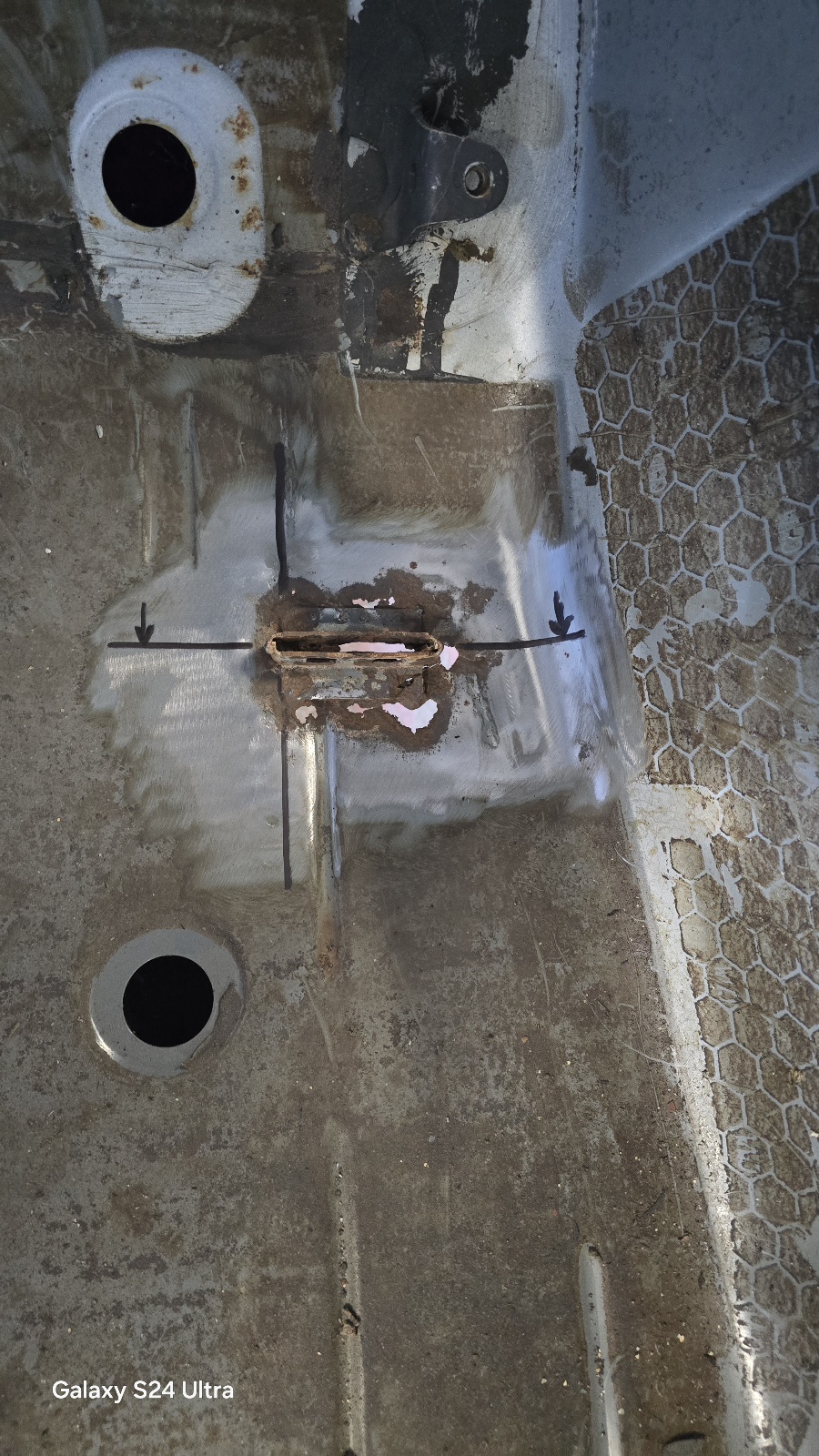 J'ai ensuite embrayé sur le planché au niveau de la pédale d'accélérateur , qui était bien bouffé .
