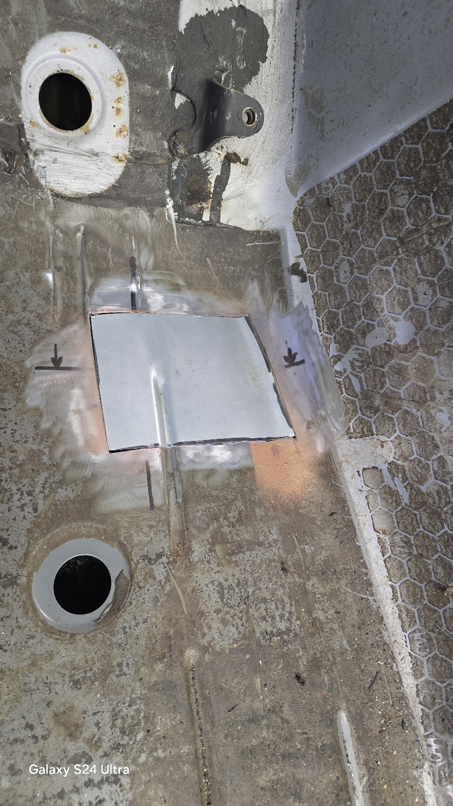 Puis j'ai découpé la zone corrodée , et préparé la rustine.