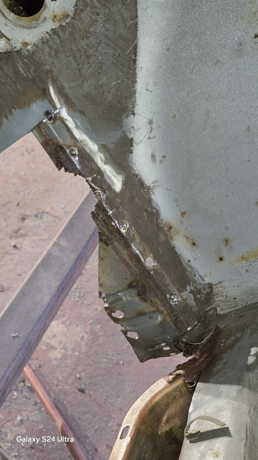 Ici on voit bien l'épaisseur qui a disparu avec la rouille .