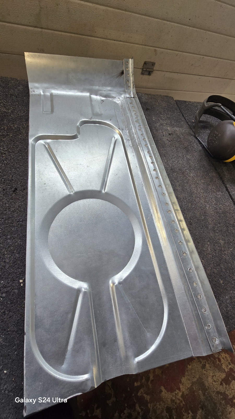 La tôle extérieure qui recouvre le planché est également attaquée , alors on coupe .