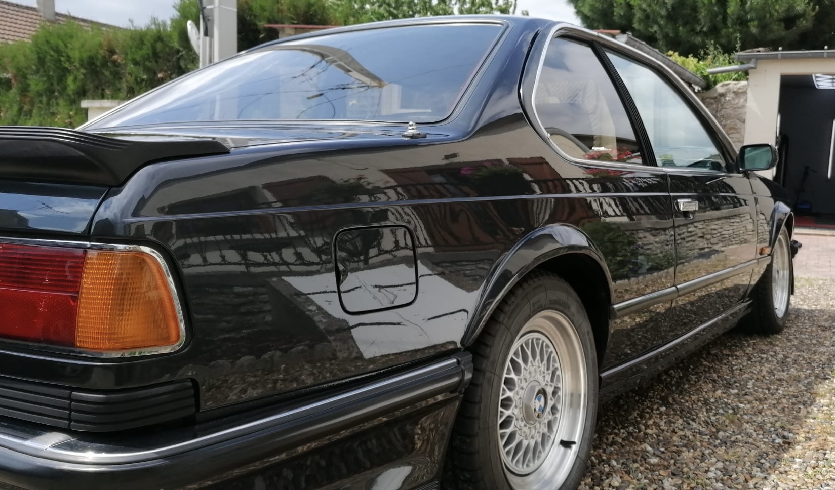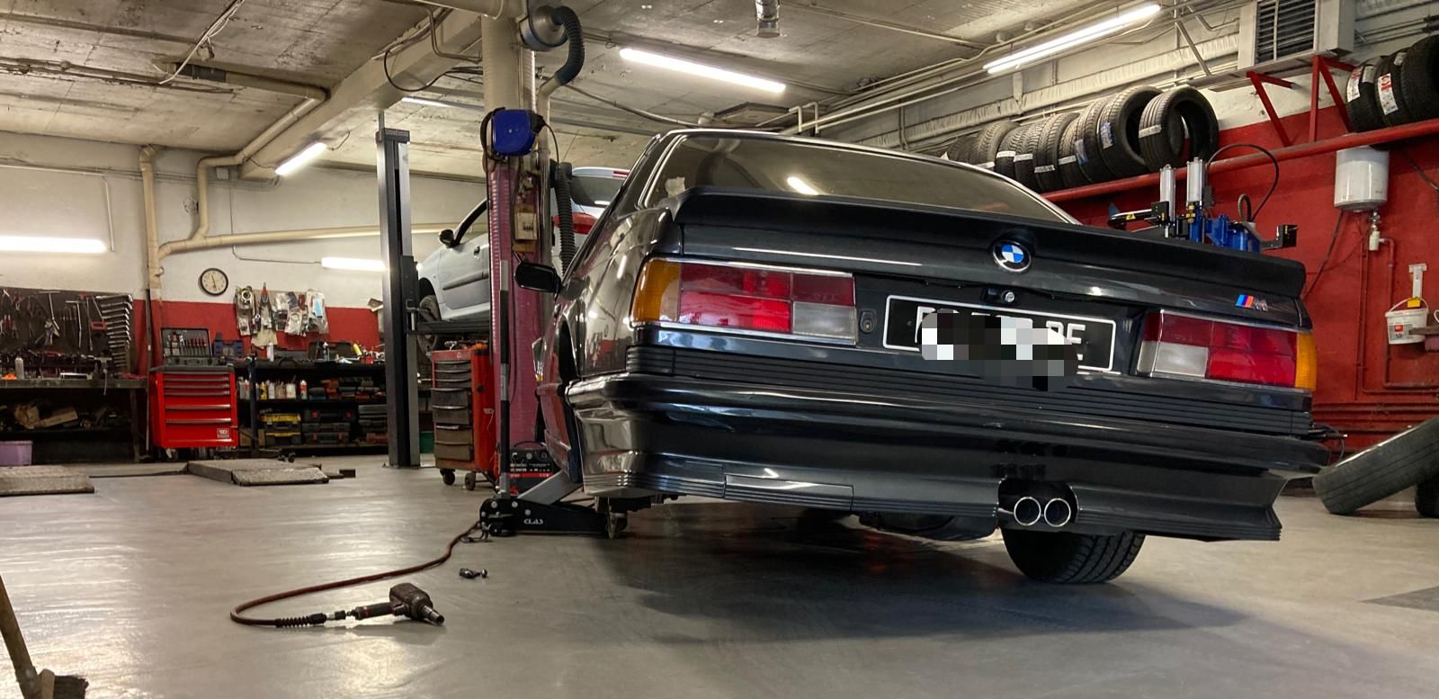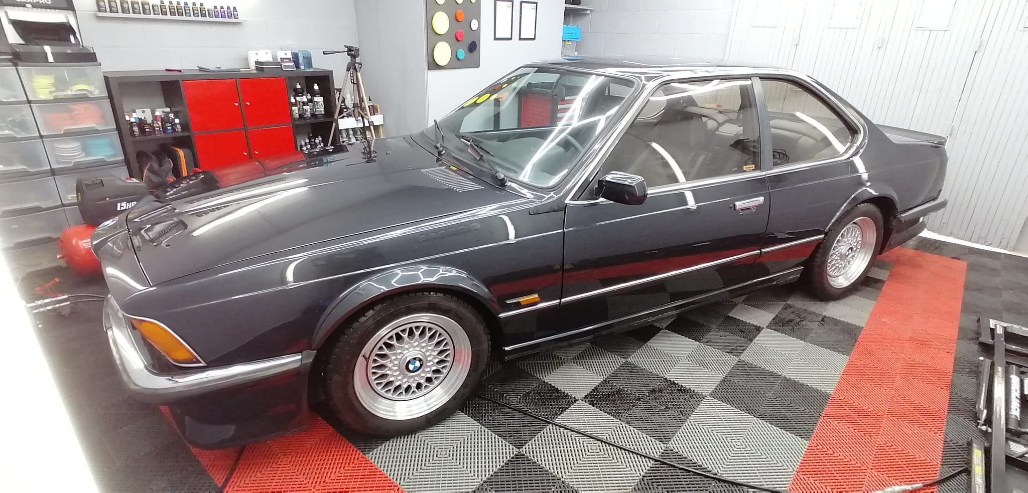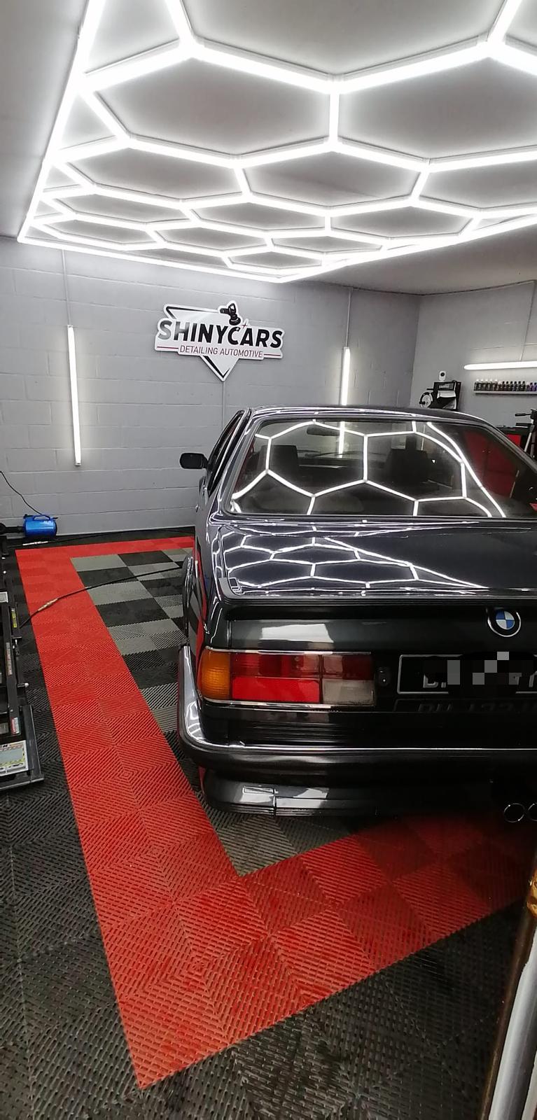 La seconde correction du vernis a eu lieu, certains endroits ont nécessité une troisième passe mais globalement le véhicule était assez peu abîmé. Les vitres ont toutes été désoxydées et polies. L’intérieur était degueu surtout la moquette de coffre qui a fait que l’eau shampouineuse est devenue une sorte de boue. Demain pose de céramique plus finitions. Samedi je la récupère et je pose les badges M avant et arrière.