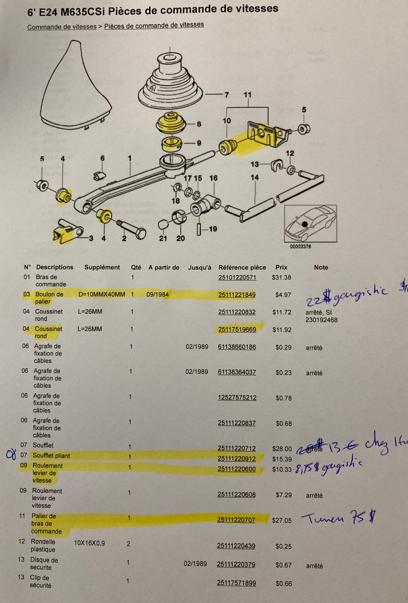 Je reviens vers vous car grâce à Florian j'ai trouvé un kit de réfection pour la tringlerie de boîte. A un prix tout à fait correct.