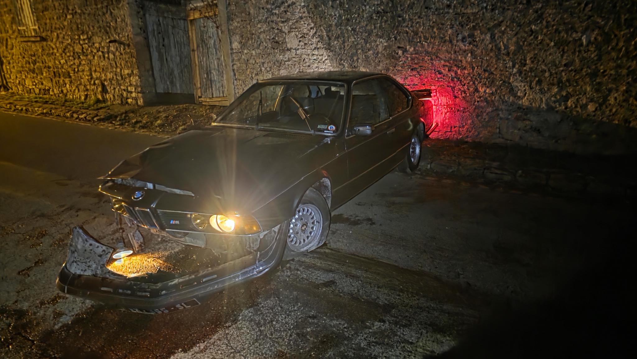 Je possédais une 628 CSi de 1987. Suite à un accident récent, mon bébé est plié, complètement. Je m’en veux énormément, je suis complètement KO, abattu.