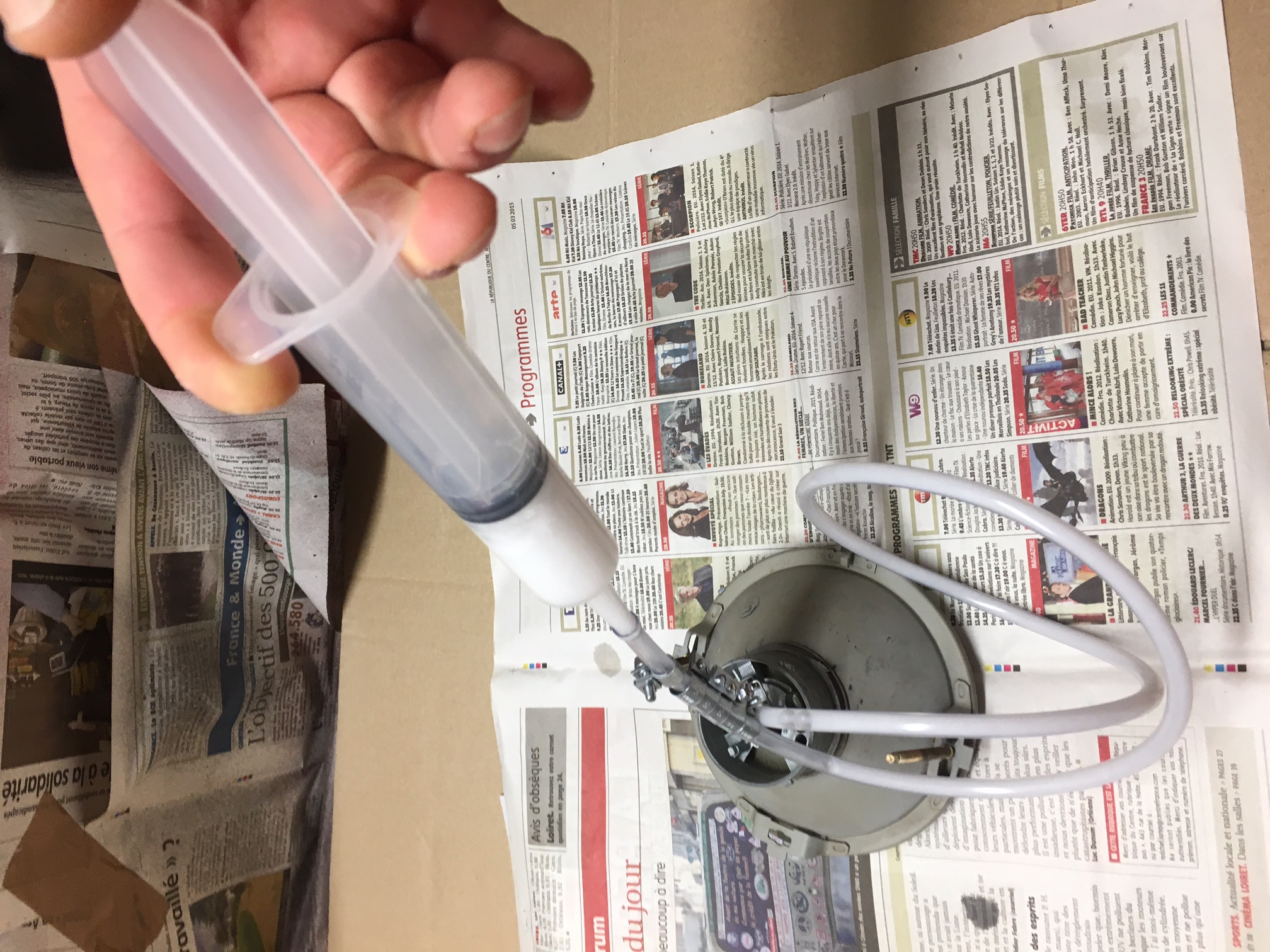 Après quelques jours de séchage ( pendant lesquels j'ai fait brillé les entourages chromés et nettoyé les éléments de fixation), opération remontage.