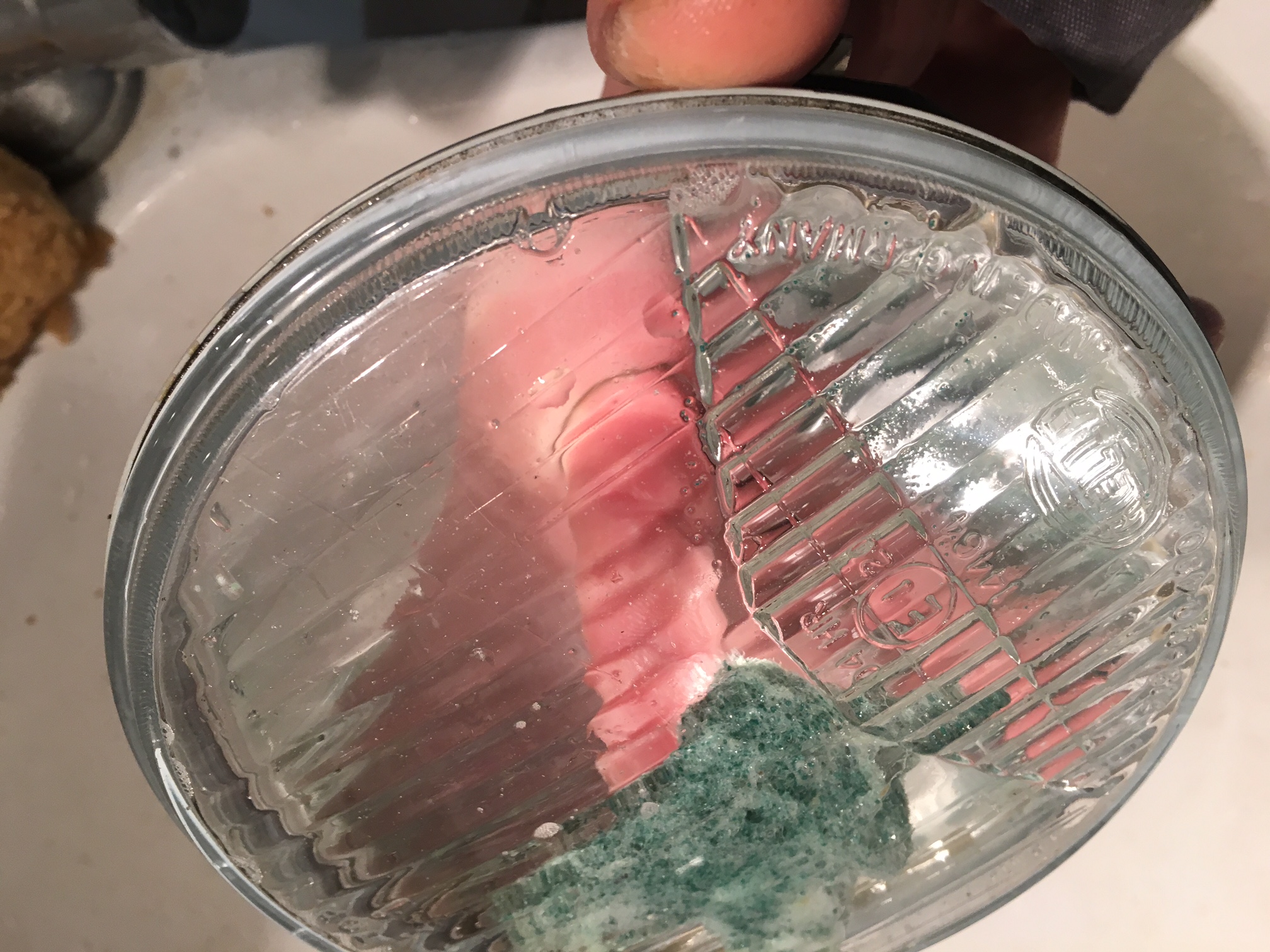 Ensuite ponçage à la laine d'acier 000 des bords du phare et des bords du verre, petit coup de soufflette, deuxième passage à la laine d'acier, mais ce coup ci avec du diluant ( idem sur les deux faces du verre pour parfaitement nettoyer et dégraisser), puis re-souflette et re-nettoyage au diluant mais cette fois-ci avec un chiffon pour s'assure que tout est niquel, propre et dégraissé.