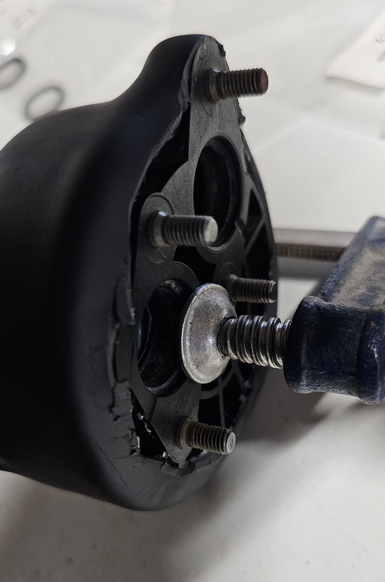 Première étape, virer la coque en plastique. je l'ai entaillé au cutter au niveau de l'oreille de fixation et après je l'ai écarté à la pince multiprise.