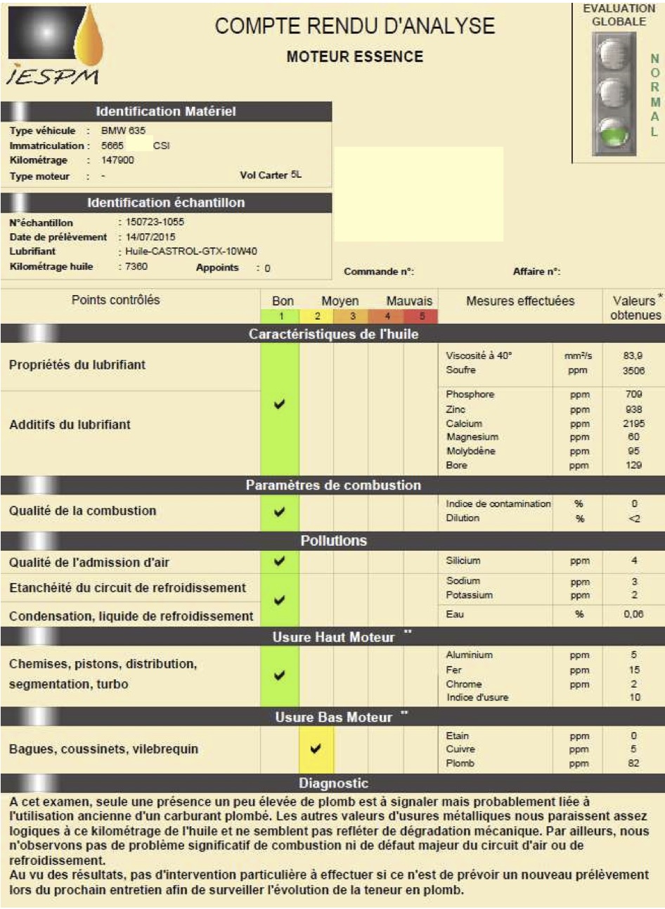 Ainsi, je partage avec vous les résultats de la récente analyse d'huile réalisée sur un échantillon du liquide provenant du carter de 5665.