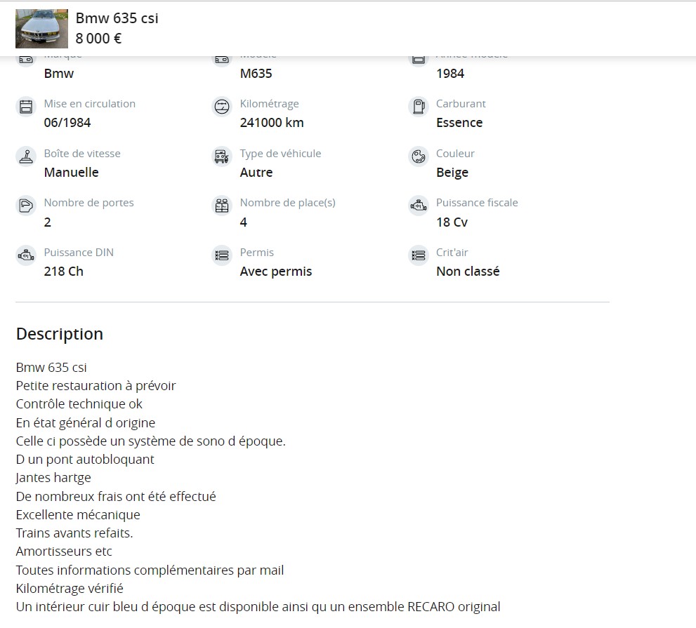 Inscription: 20 Fév 2022 Messages: 3 Ma E24: M635CSi |